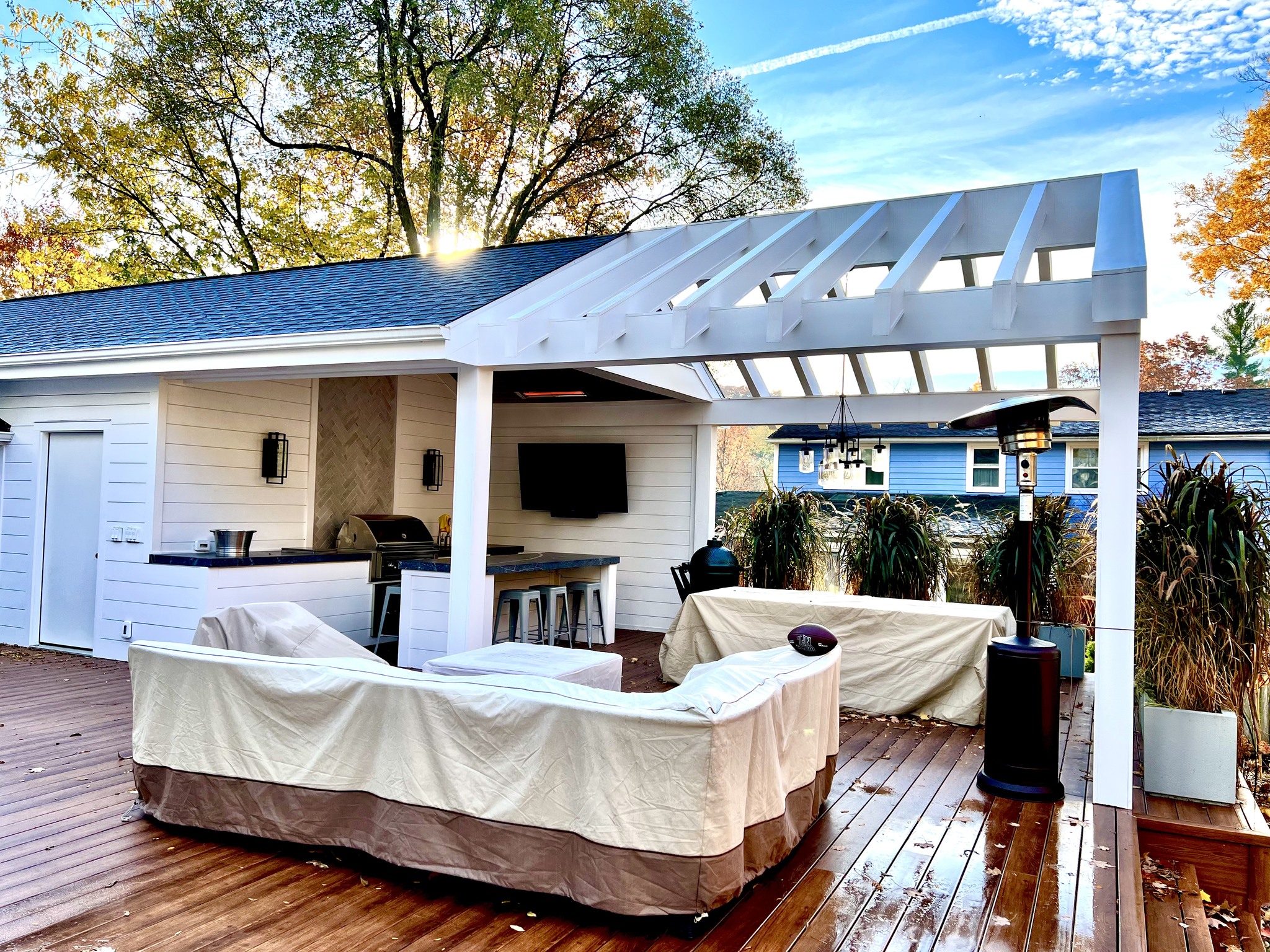 As you can see, we do a little bit of everything. We do new construction, remodeling, decks, gazebos, fencing, flooring, resurfacing of garage floor, sheds.